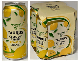 It also brought a claim of passing off in relation to Aldi’s Taurus Cloudy Cider Lemon product (as seen below).